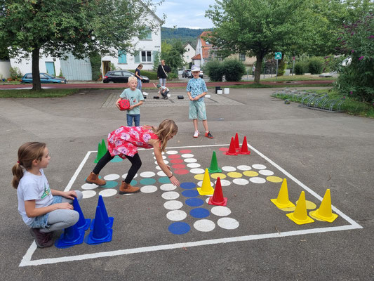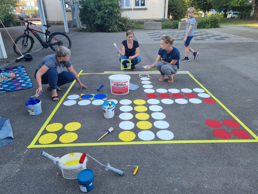 Mitglieder des Freundeskreise haben an einem schönen Sommerabend mit viel Ausdauer und Freude und tatkräftiger Unterstützung von Thomas Nill das "Mensch ärgere Dich nicht" Spiel auf